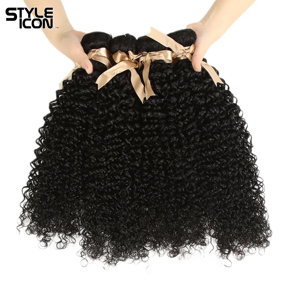 Малайзийские кудрявые волосы Styleicon, натуральные кудрявые пучки волос дюйма, с сетчатой фронтальной застежкой 13 х4, свободная застежка, с пучками волос