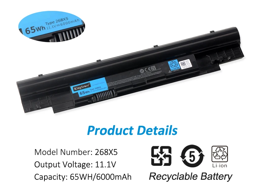 Аккумулятор Kingsener H7XW1 268X5 для ноутбука Dell Vostro V131 V131D Inspiron 13Z N311z N411z H2XW1 H7XW1 JD41Y 11,1 V 65WH