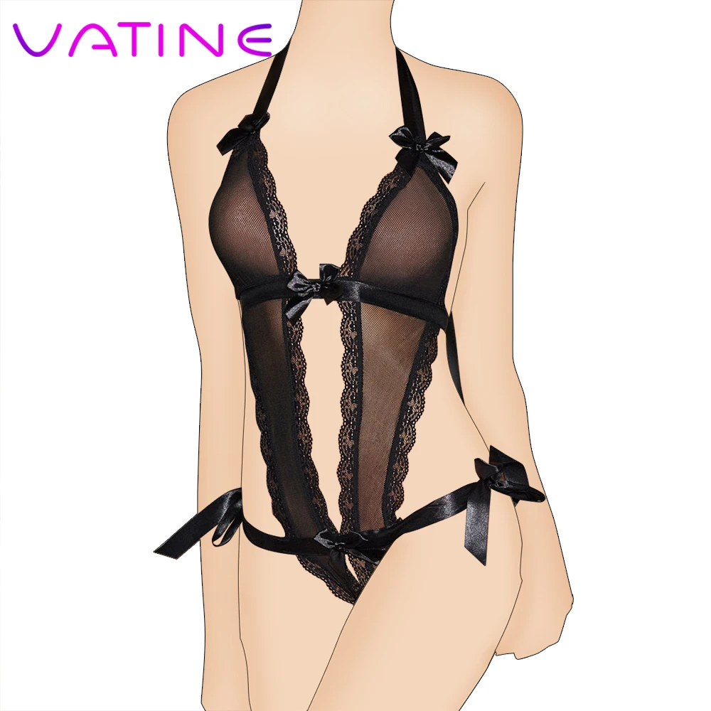 Комбинезон кружевной с V-образным вырезом, прозрачная Пижама