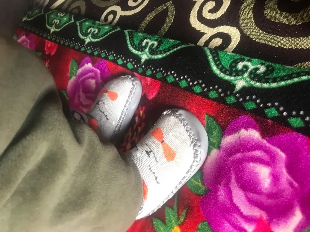 Тапочки пришли в Ростов-на-Дону за 16 дней. Заказывала размер 9м, на ножку 11,5см сели отлично. Не сползают, ребёнку очень удобно бегать в них в ходунках. Внутри ест немного торчащие ниточки в районе рисунка, но это не страшно. Пошиты ровно и аккуратно . За такую цену просто находка!