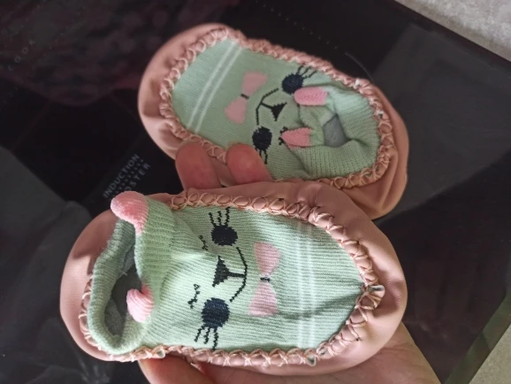 Качество самих носочков хорошее. Брала на ножку 12см, немножко большеваты. Но подошва скользкая, не спасают даже пупырышки!