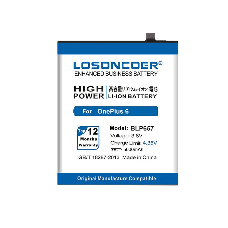 LOSONCOER BLP657 5000 мАч батарея для смартфона OnePlus 6 OnePlus Six 1 + One Plus 6 Батарея ~ в наличии