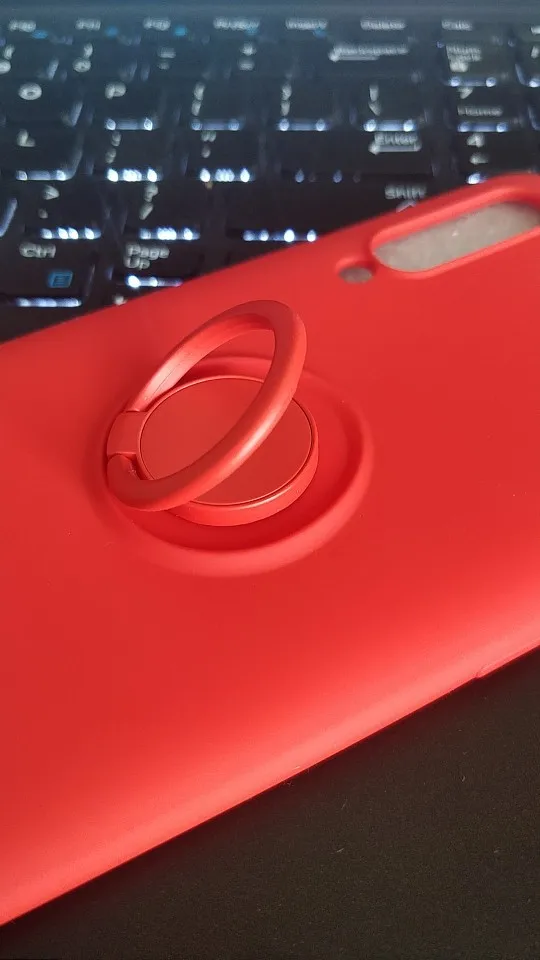 чехол красивый, приятный на ощупь. недостатки: на поверхности чехла сильно остаются отпечатки, кольцо пластиковое