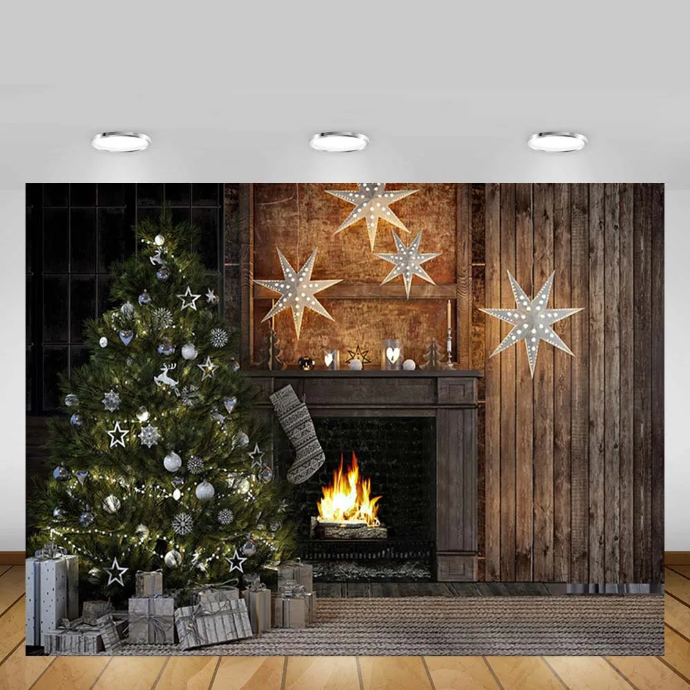 Фон Mehofond Рождественская елка камин винтажный коричневый деревянный настенный ковер светильник фон для Фотографии Декор для фотостудии
