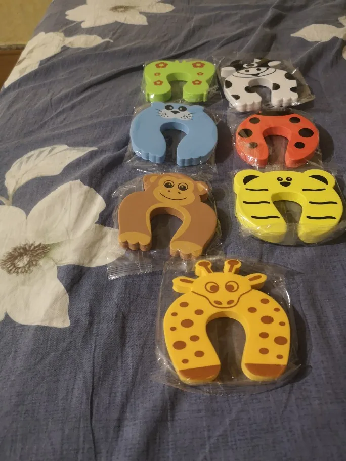 Всё как в описании, 7 шт! Хорошая защита на двери, малыш теперь не прищимит пальчики, а он так любит открывать и закрывать двери, хотя ещё только ползает) Думала может не подойдут на наши широкие двери, но всё подошло, подойдут и на двери уже. Товар пришёл быстро, дней за 10, может чуть меньше.