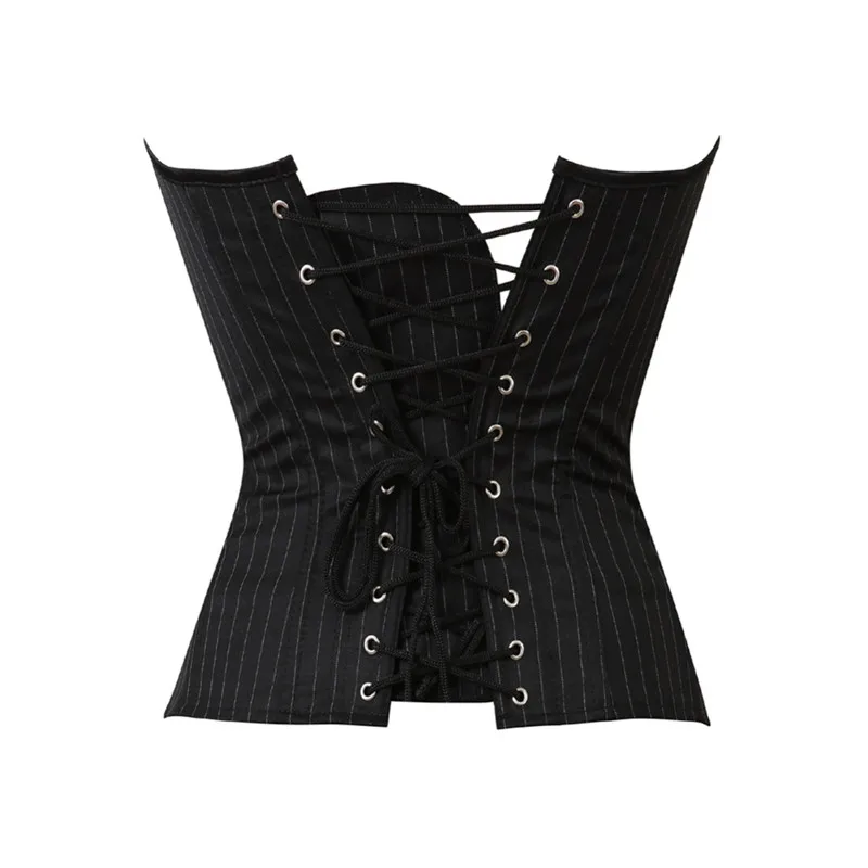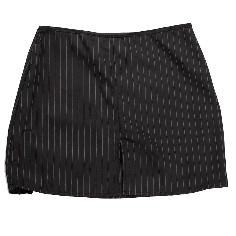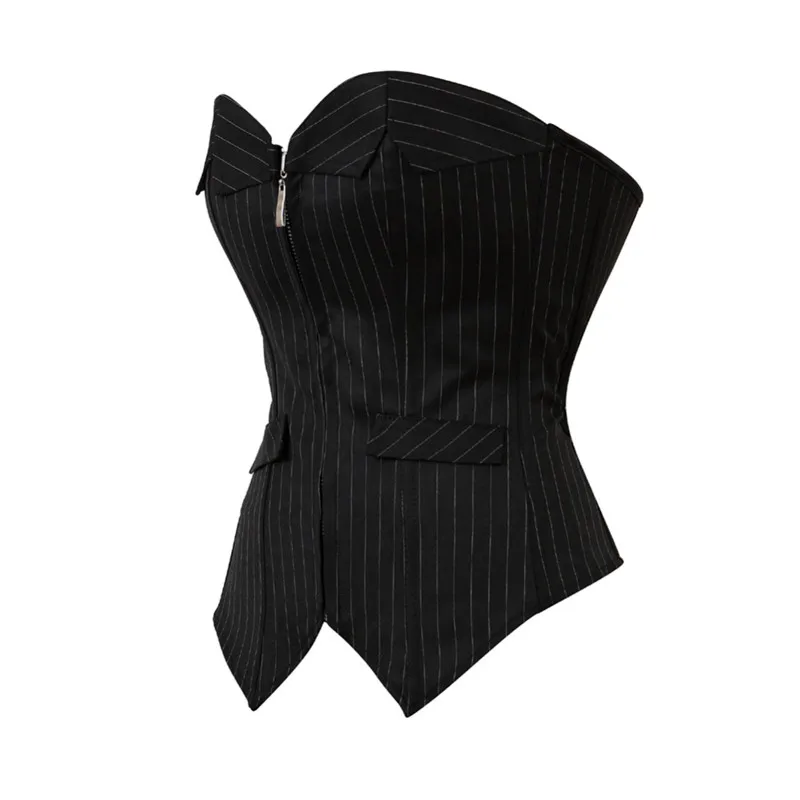 Сексуальный черный в тонкую полоску, на молнии, деловой комплект, корсетное платье, топ и юбка, тонкий костюм, размера плюс, S-6XL