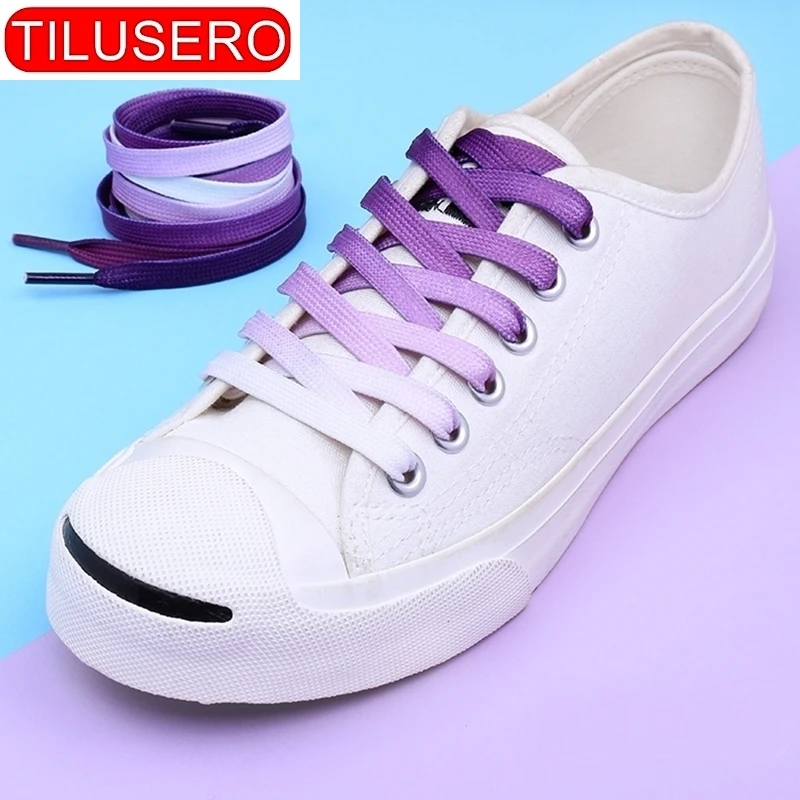Плоские шнурки 95 см с градиентом цвета, меняющие цвет, для обуви с радужным принтом, повседневные цветные шнурки для холщовые шнурки