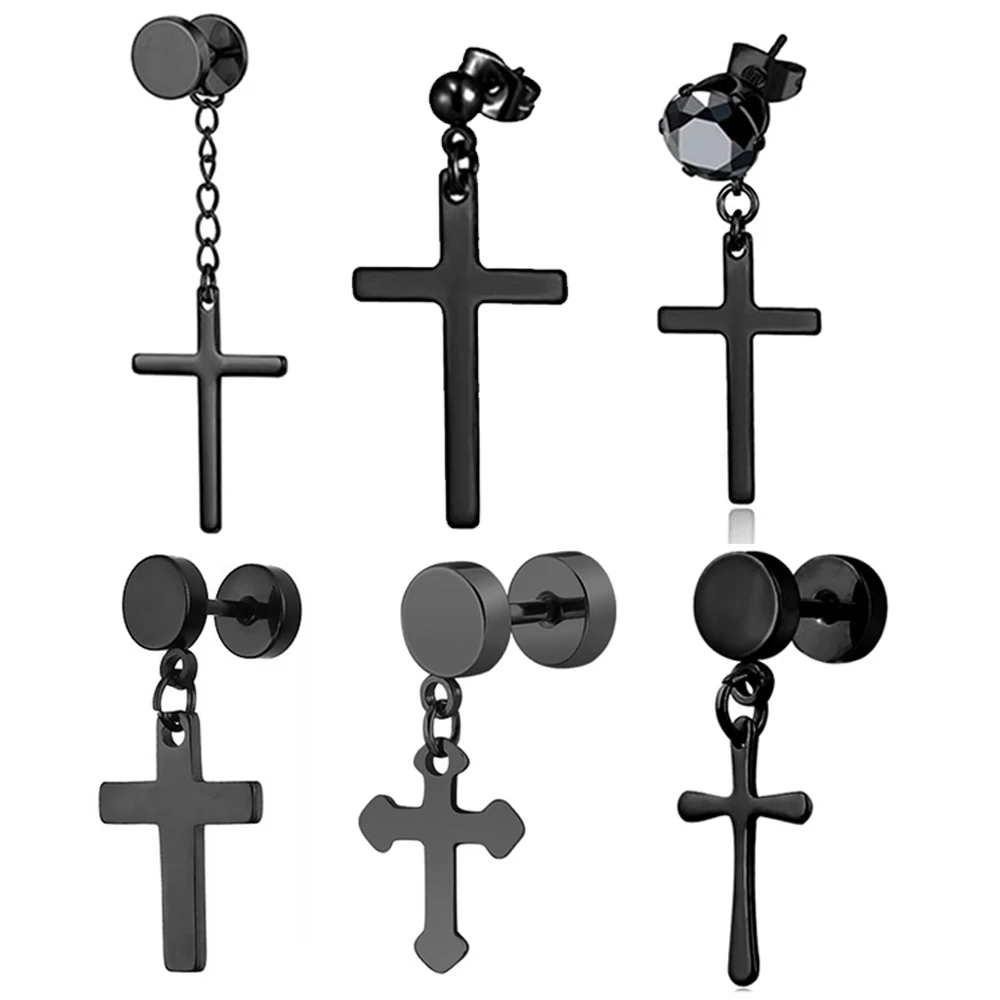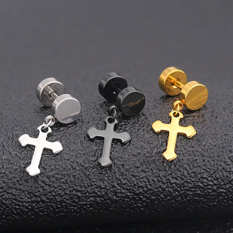 Серьги-гвоздики из нержавеющей стали для мужчин и женщин, круглые ювелирные украшения в стиле панкготика, поддельные конусные, с крестом, в стиле рок, бижутерия, 1 шт.