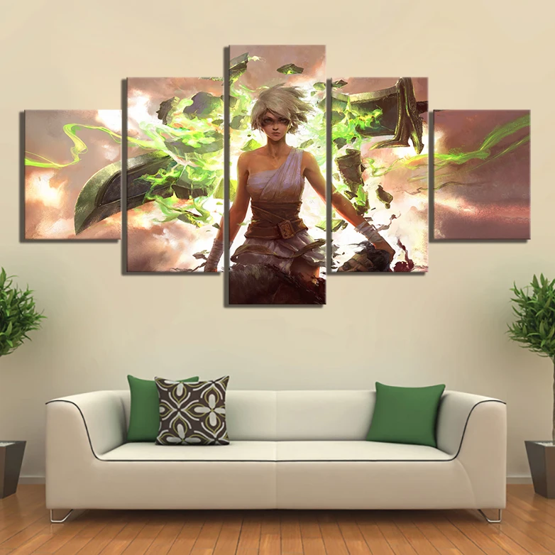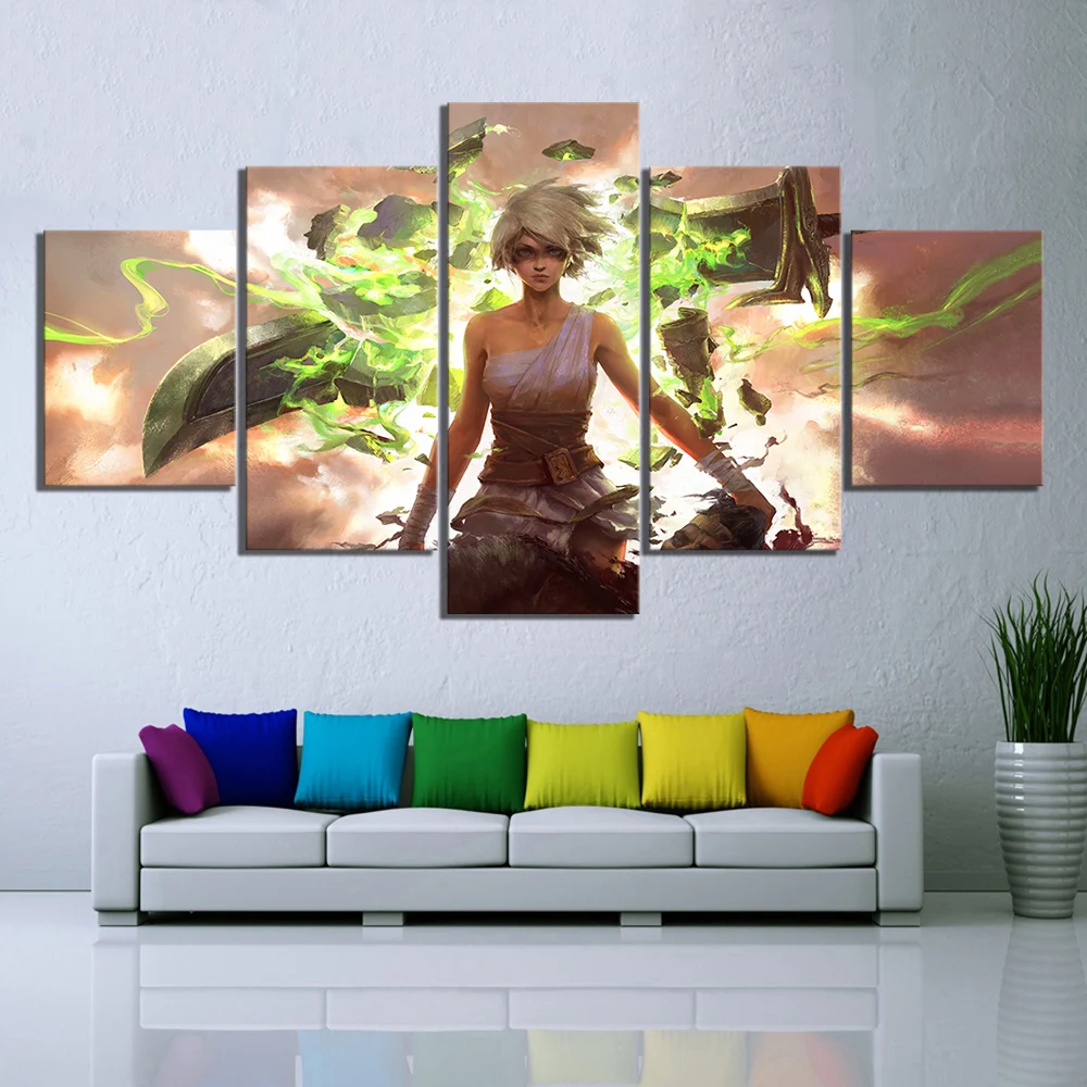 Настенные художественные принты плакаты модульные картины 5 панелей Ривен Лига Легенд игра Холст Живопись Домашний Декор Современная для комнаты мальчика
