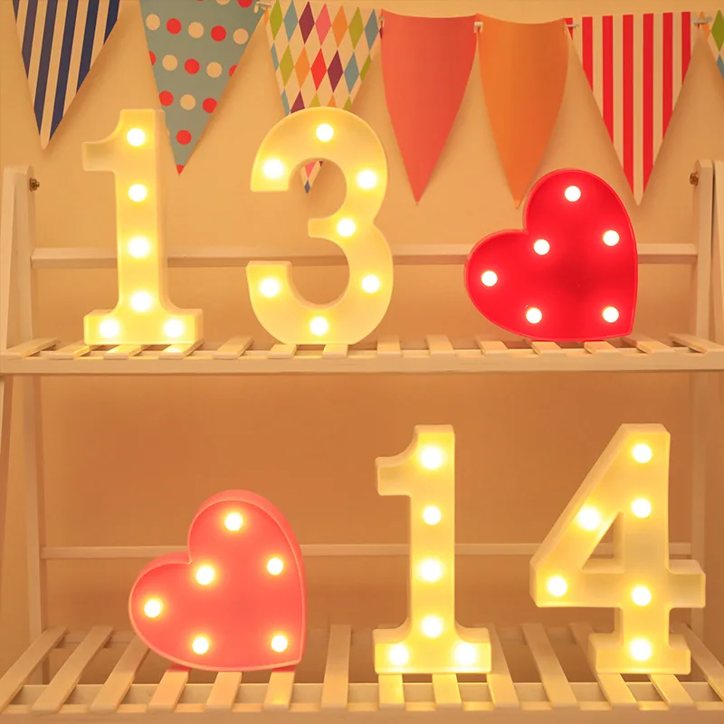 Светодиодный ночсветильник с цифрами сделай сам, украшение для спальни, подарок на день рождения, сердце, романтическое украшение для свадебной вечеринки, Дня Святого Валентина, лампа для домашней атмосферы