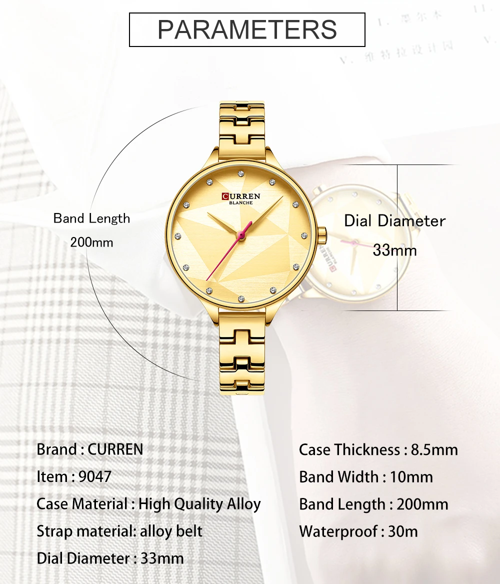 Часы наручные CURREN женские кварцевые, брендовые модные дизайнерск...