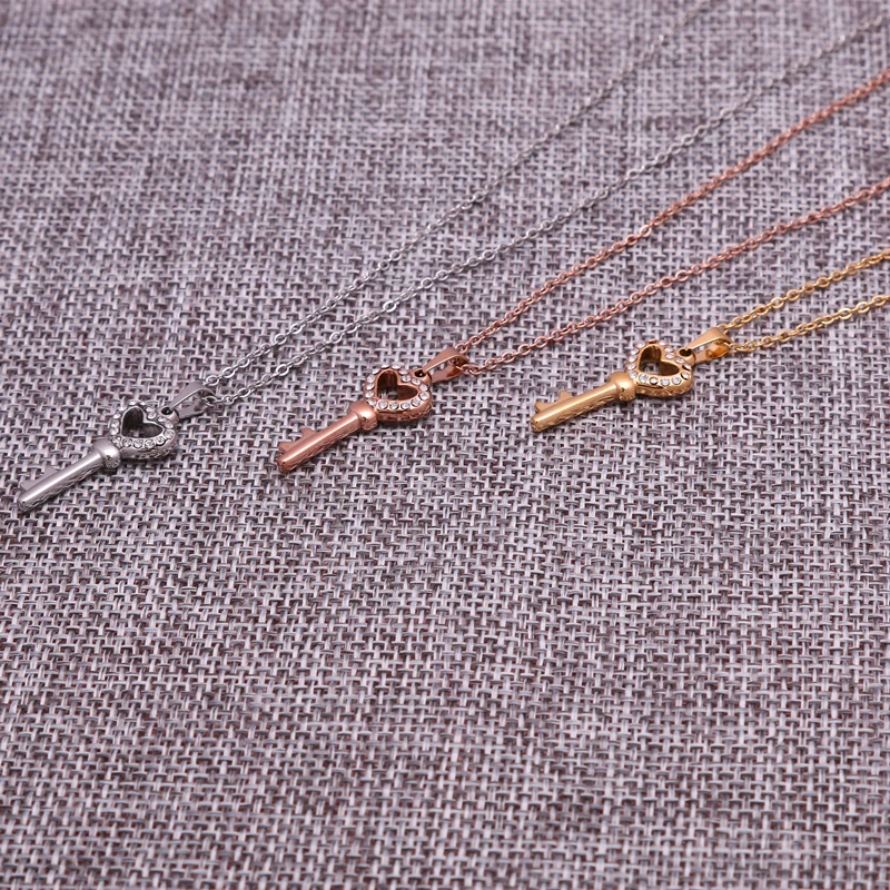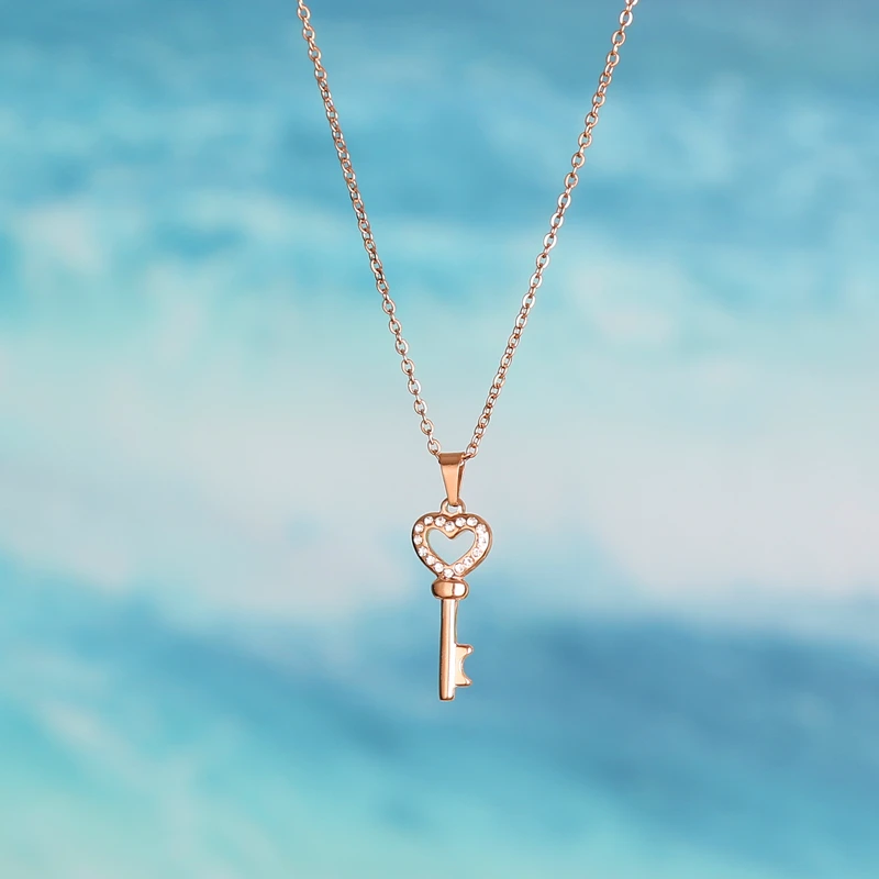Цепочка с подвеской в виде ключа из нержавеющей стали с кристаллами для женщин, ожерелье с кулоном в виде ключа к моему сердцу, лучший подарок для влюбленных на День святого Валентина