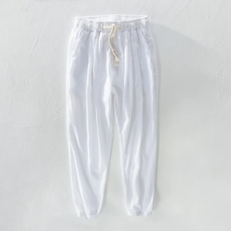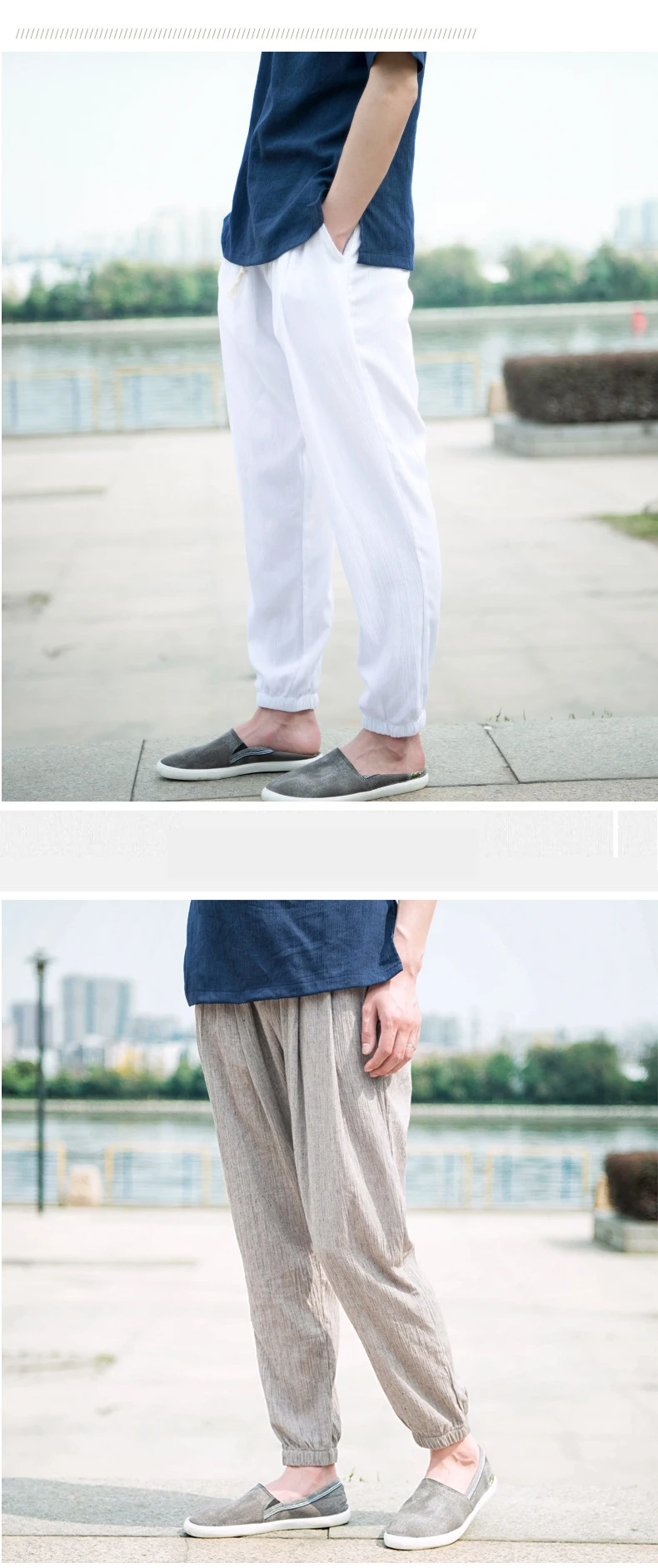 Мужские летние повседневные шаровары из натурального хлопка и льна, белые шаровары с эластичной резинкой на талии длиной до щиколотки Y1694