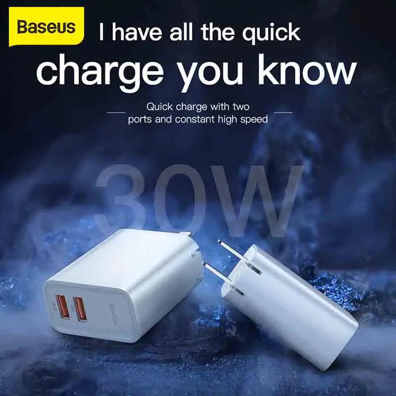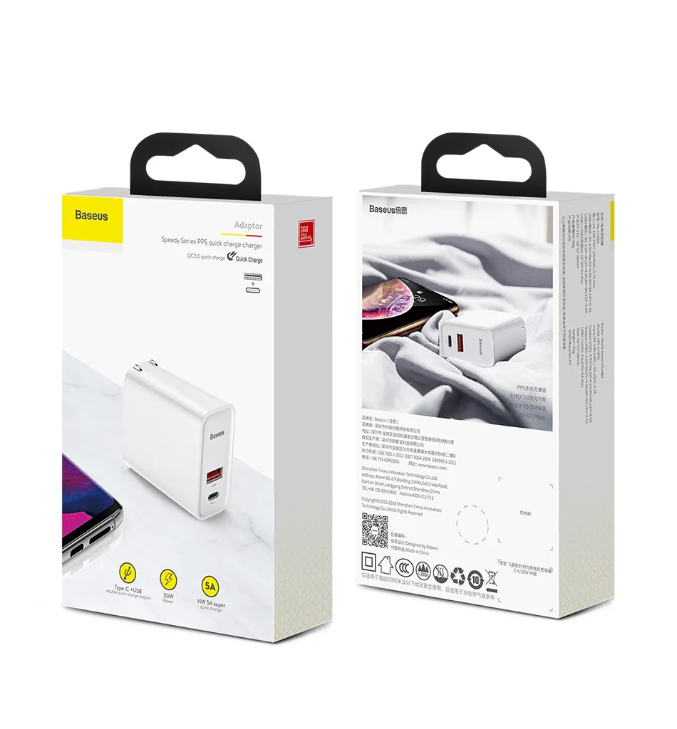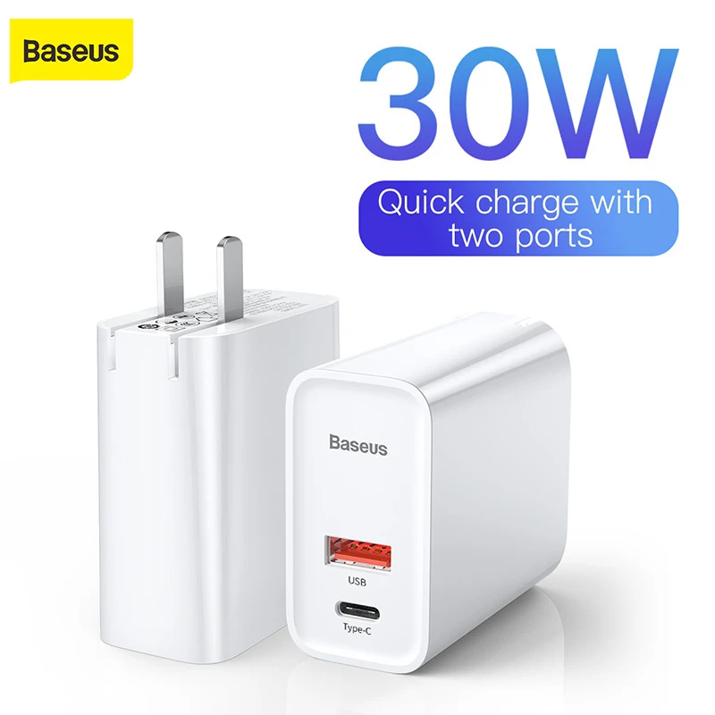 Baseus 30 Вт Usb C Usb зарядное устройство быстрое зарядное устройство 3,0 ЕС адаптер для зарядки телефона дорожное зарядное устройство с 1 м тип-c Usb кабель