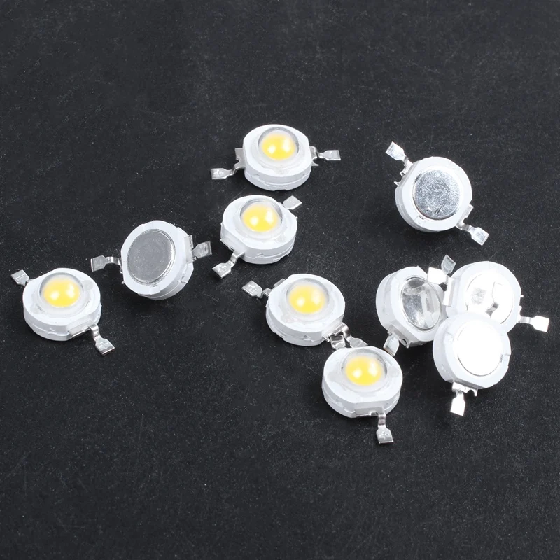 10 шт., мощсветодиодный светодиодные бусины-излучатели, 2 контакта, 3 Вт, теплый белый свет, 100-110 лм, для видеокамеры, аквариума, автомобиля, бассейна, фонарика, декора