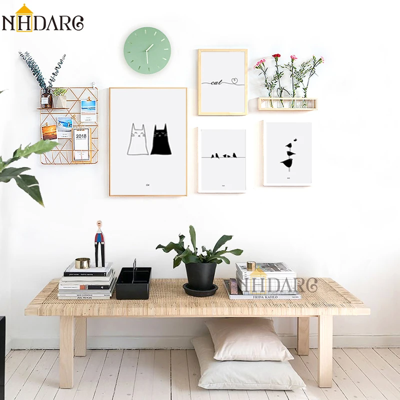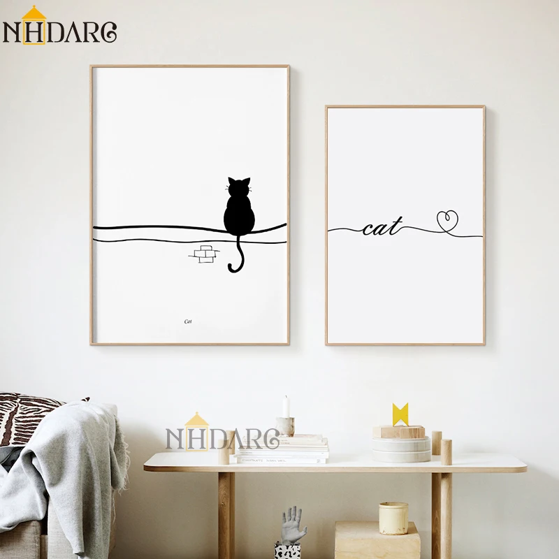NHDARC Печать на холсте спрей живопись скандинавский прекрасный кот простая линия художественные плакаты и принты настенные картины Домашний декор ARC00818