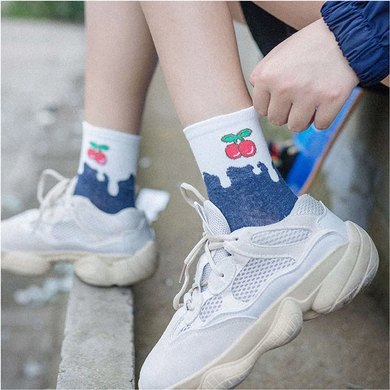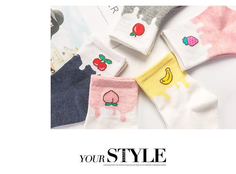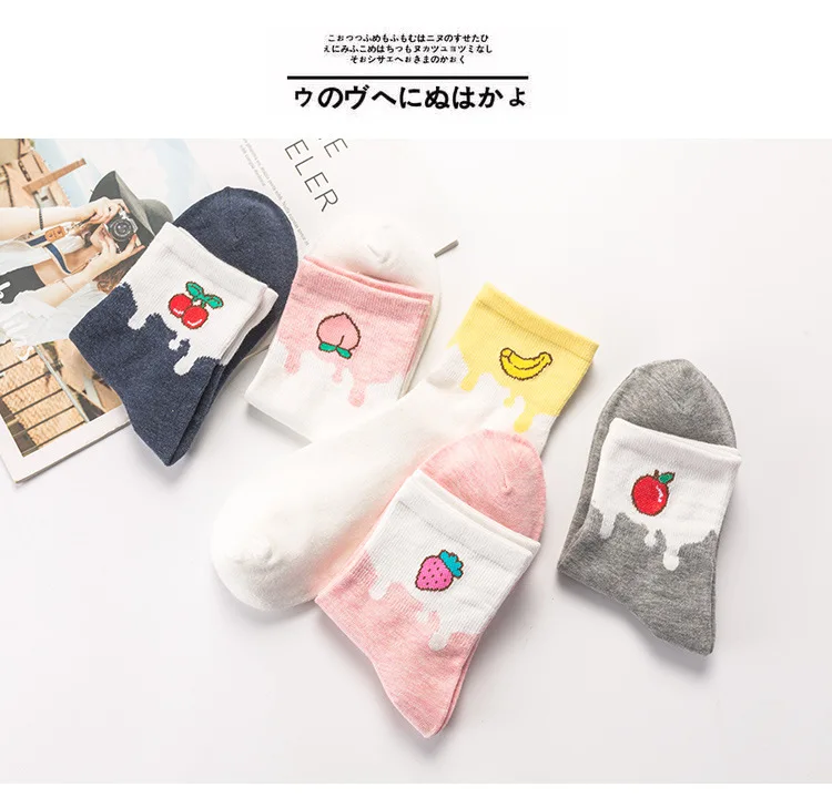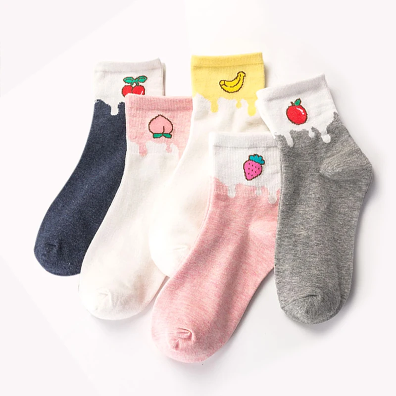 5 парлот Мода фрукты Клубника Apple персик типа "банан" Вишня Happy короткие носки женские ботильоны Kawaii Забавный хб носки хлопковые носки с рисунком