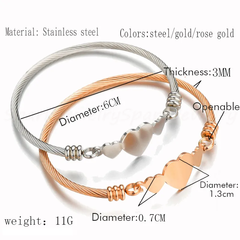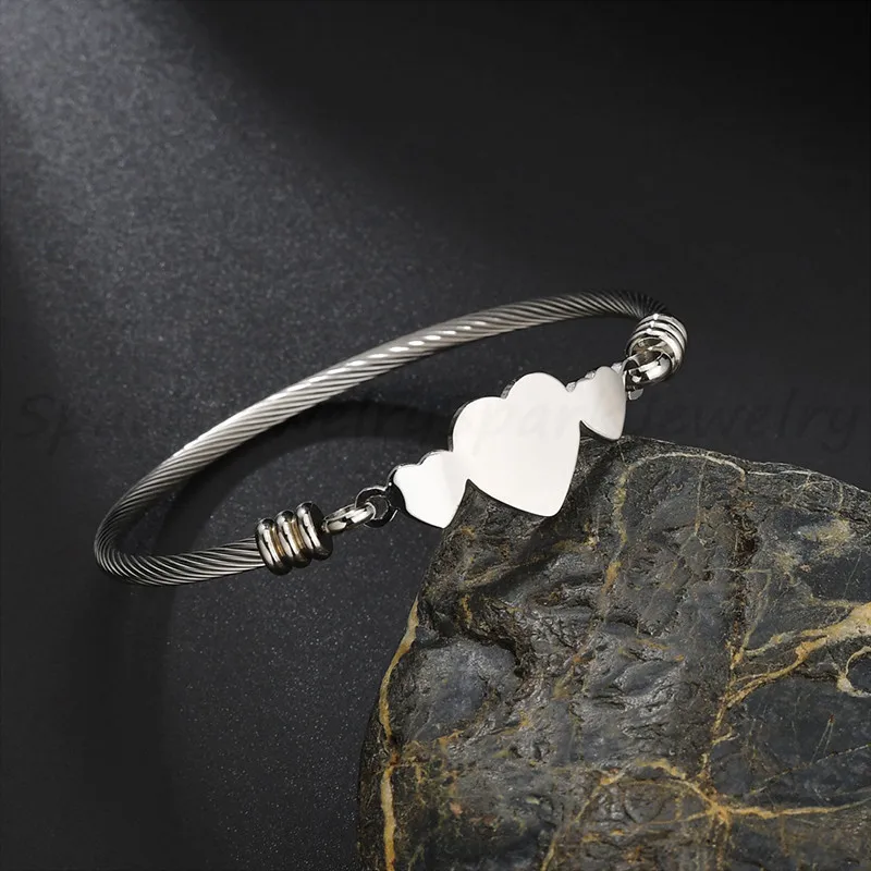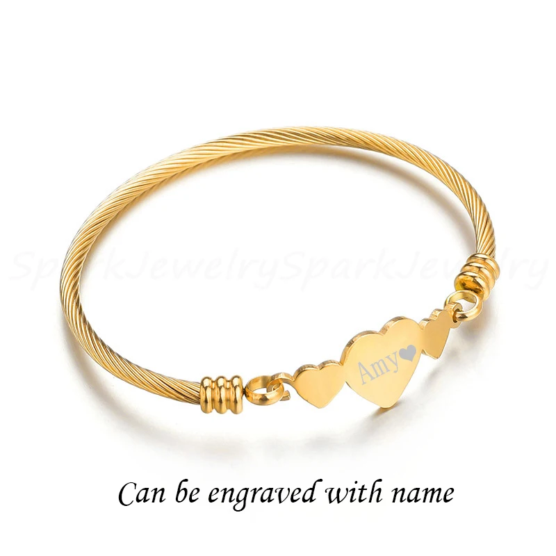 Spark персонализированный браслет с гравировкой имени для женщин, 3 цвета на заказ, браслет из нержавеющей стали с сердечком и сердечками, подарок на день Святого Валентина
