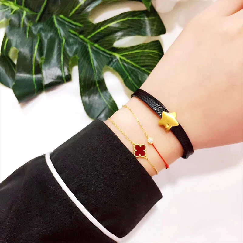 Браслет из чистого золота 999 пробы, с красными бусинами, 2020