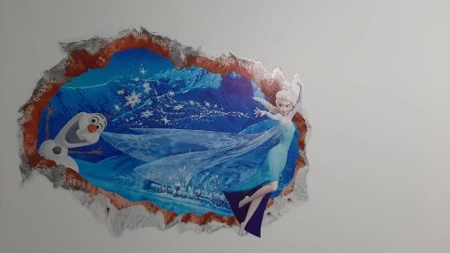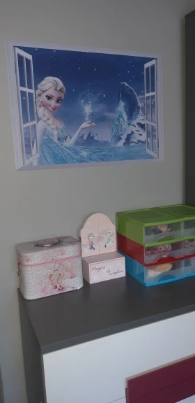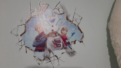 наклейка тонковата,прозрачная,поэтому на цветных обоях смотрится не так ярко,а так внучке понравилось