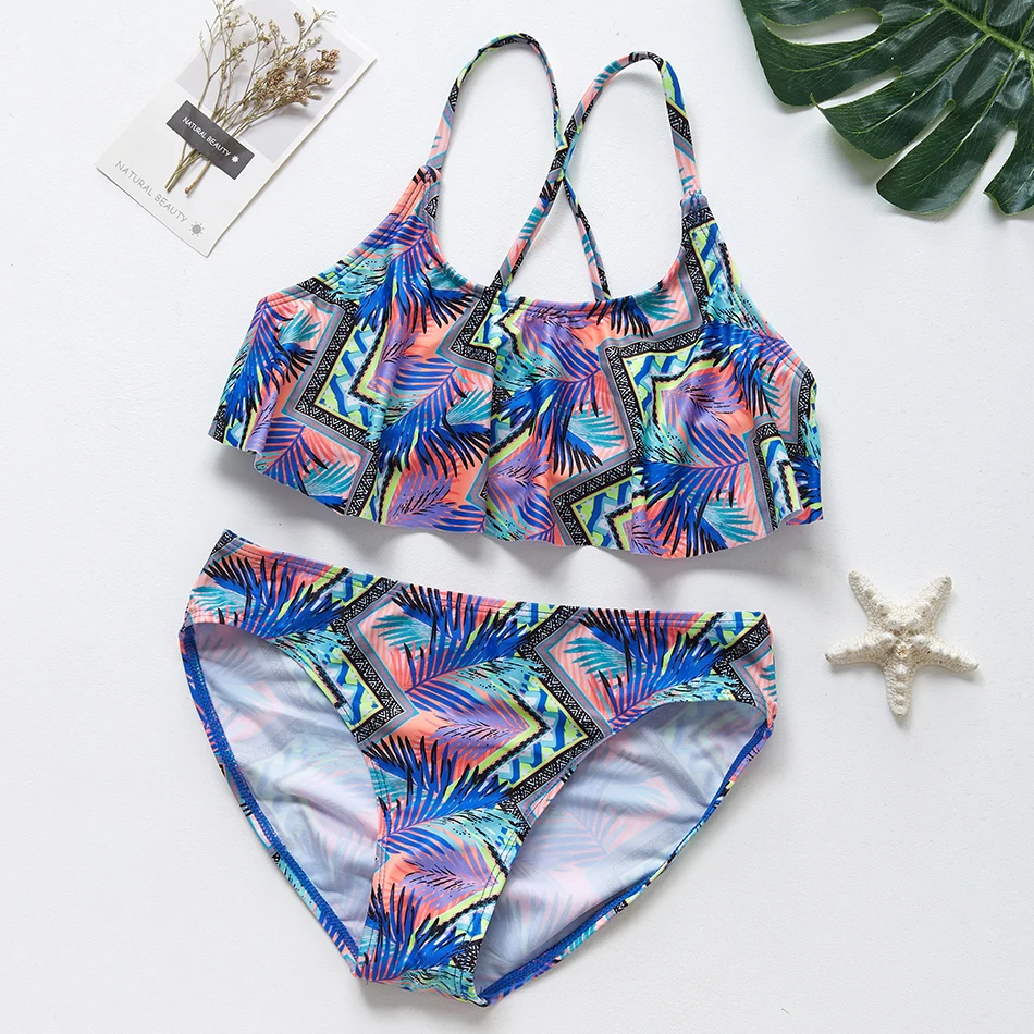 Купальник для девочек, из двух частей, с горячим тиснением, детский купальник, 2021, пляжная одежда для девочек, купальный костюм JX25, От 4 до 16 лет