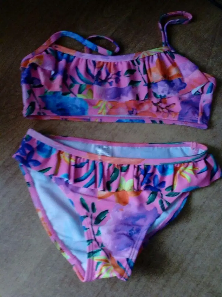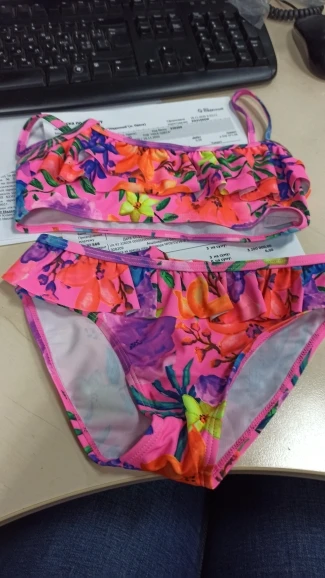 купальник очень симпатичный, но ткашка тонюсенькая, думаю что на один сезон... цвет очень яркий, брала для внучек два разных размера 11-12 и 14-16 и скажу, что разница в размере очень и очень маленькая... купальники маломерки