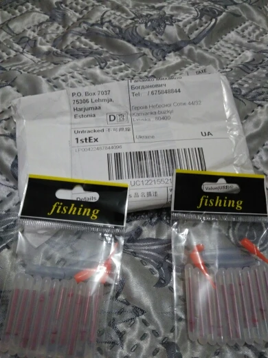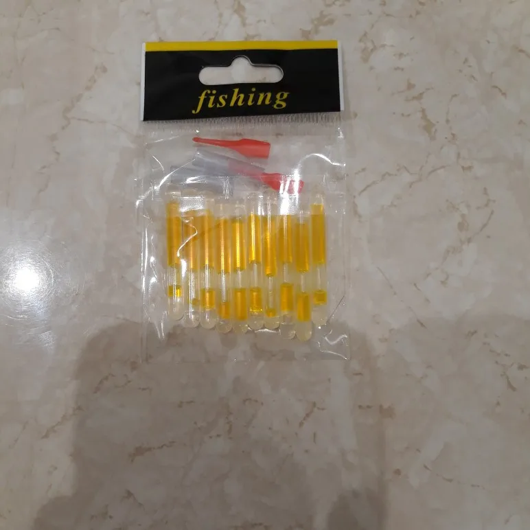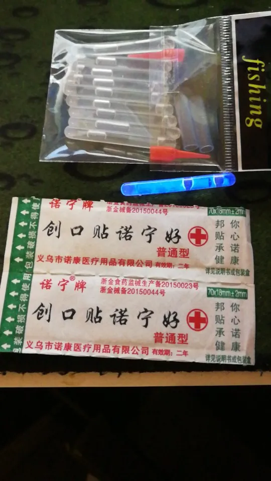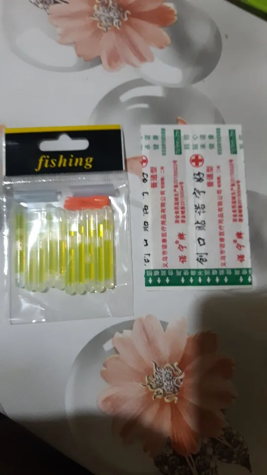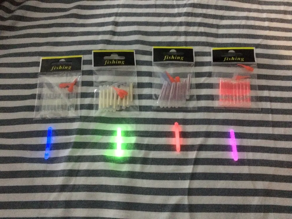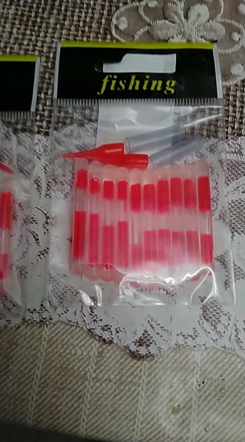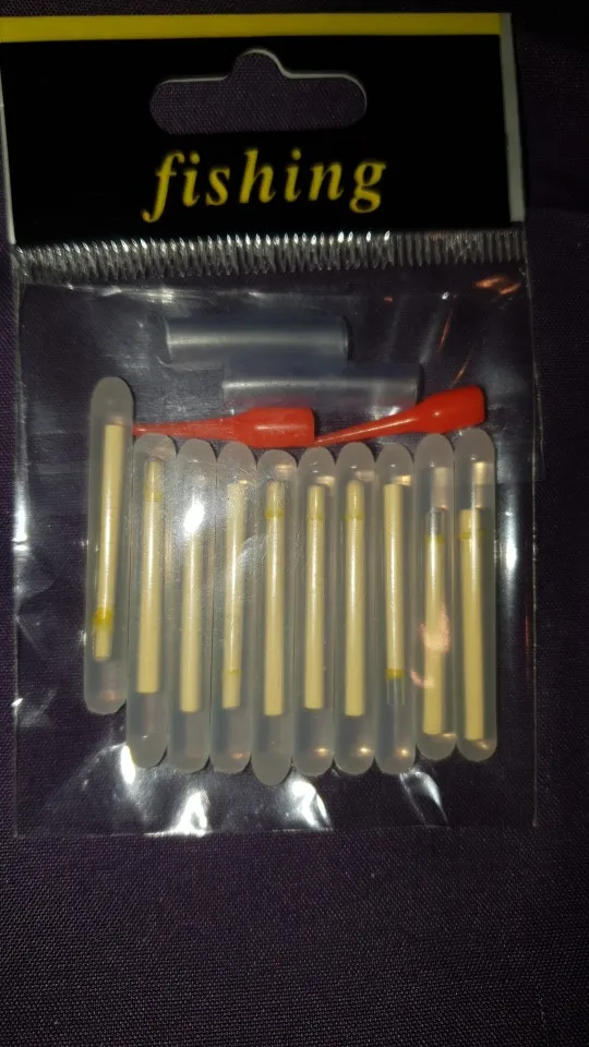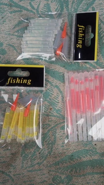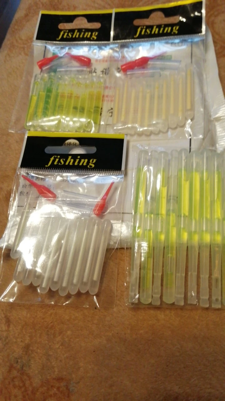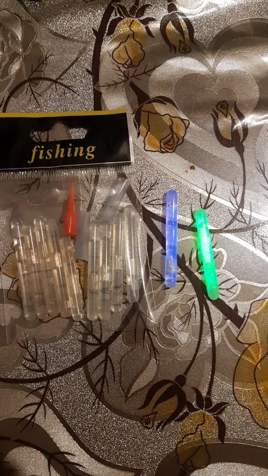 Привет Заказал набор «светлячков» для рыбалки. Доставили через 30 дней с момента заказа. Брал по 43,31 руб за пачку (10 шт в пачке). По цене очень выгодно, относительно местных магазинов. У нас по 10 руб за шт в среднем. Что можно сказать по цветам? Кому на рыбалку, ваш выбор зелёный, остальные смотрятся крайне тускло. Упаковано было просто в конверт, но пришло целым. Для себя я выбрал зелёный и буду использовать их! В подарок продавец положил лейкопластырь, ну или свой потерял))