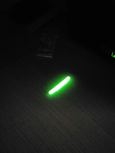 посылка пришла в Москву за 3 недели. сначала думал что по дороге испортились, потому что не видно внутри химических элементов. один надломил и пошла реакция. светит в темноте очень ярко. думаю что будет видно до 30 метров. свечение почти сутки. продавец положил подарок 2 пластинки с пластырем. товаром очень доволен. продавца рекомендую