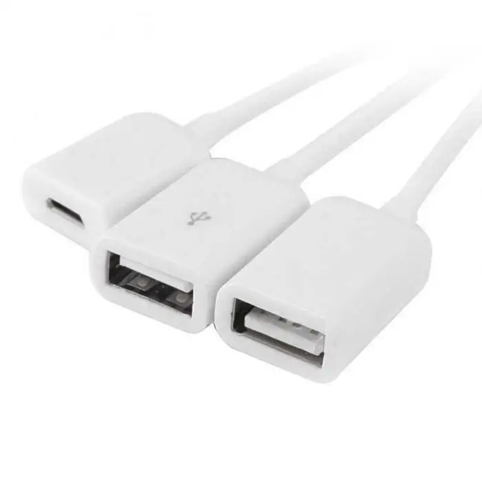 Один Males Micro USB подключается к одному Micro USB female и двум USB 2,0 Female для внешних устройств