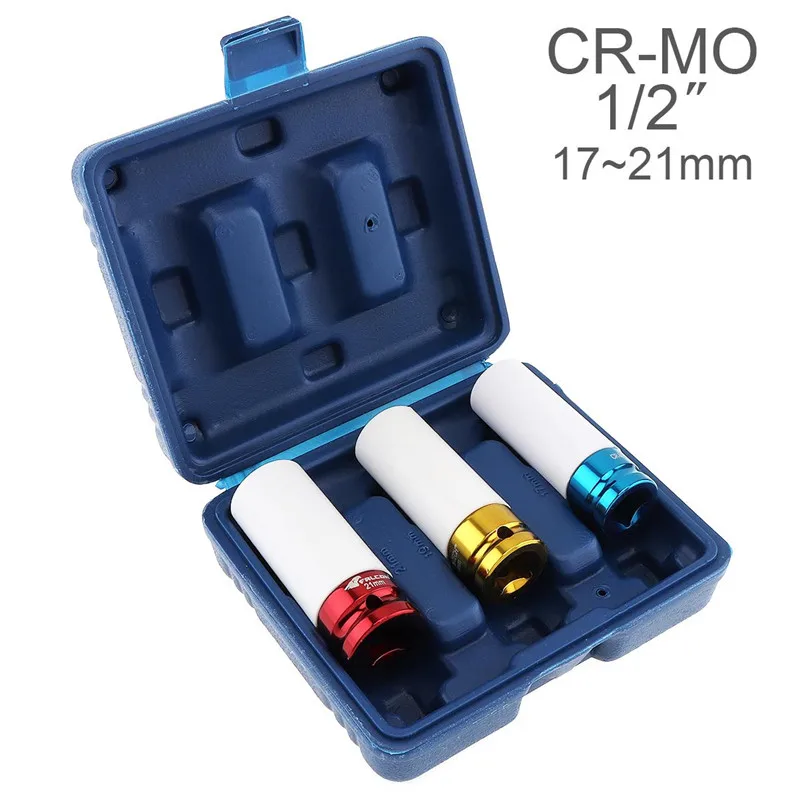 3 шт 17/19/21 мм красочная втулка для защиты шин розетка с глубоким ударом на стену гайка гнездо из высокоуглеродистой стали колесо для ремонта автомобиля