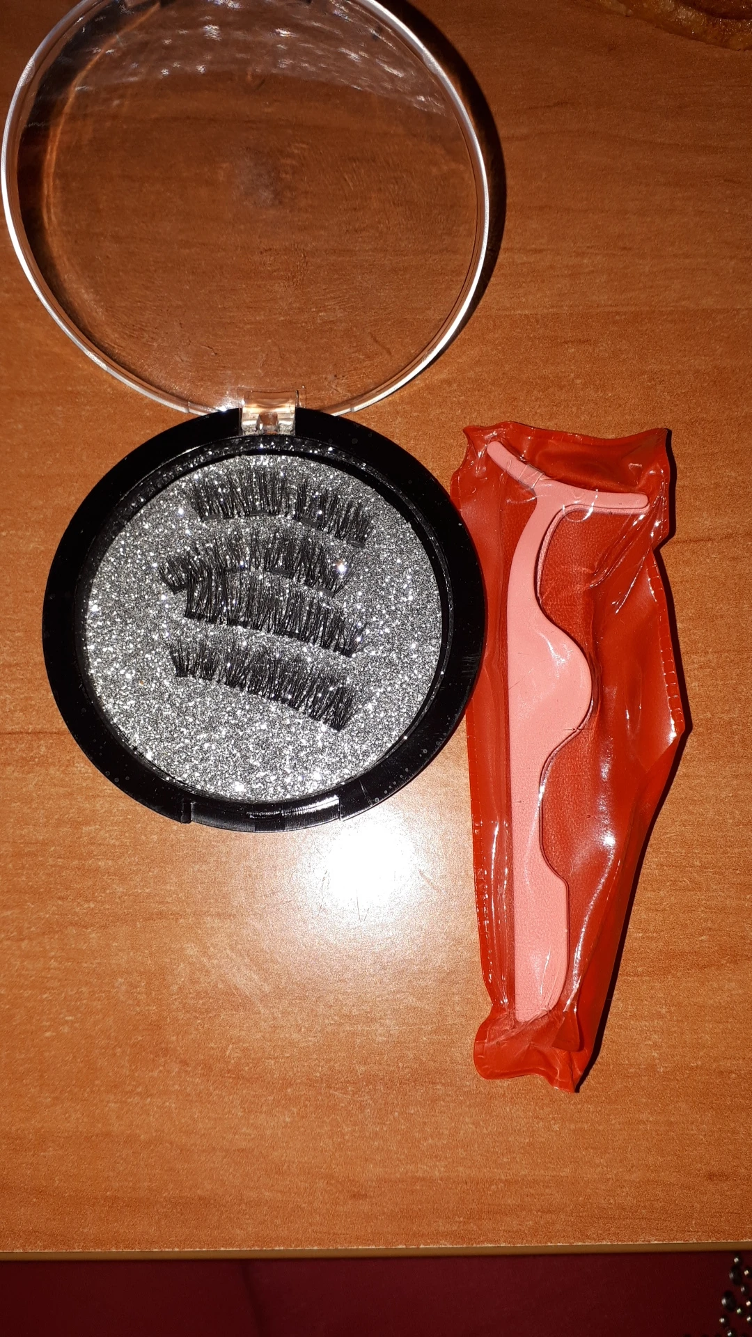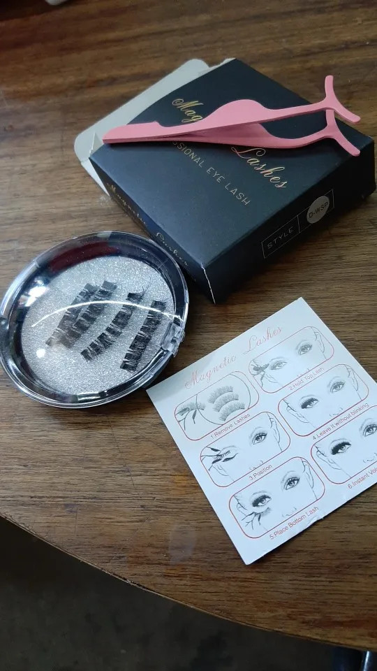 первые ресницы пришли без 2 магнитиков. продавец выслал вторые бесплатно. уже заказала ещё пару. держатся хорошо. нужно принаровиться надевать. получилось не с первого раза, теперь за 5 минут креплю. как многие писали инструмент не особо помогает или у меня не получается с ним работать.