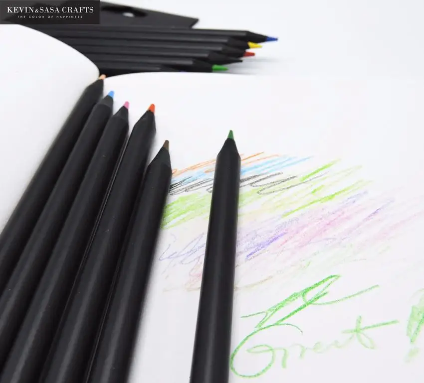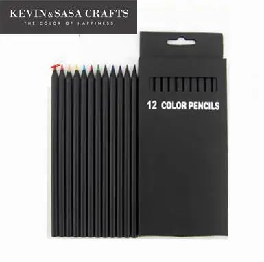 Набор цветных карандашей 12 цветовнабор, черные деревянные школьные цветные карандаши 12 разных цветов, качественные художественные принадлежности, Детские карандаши для рисования