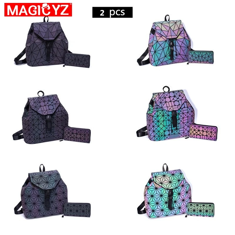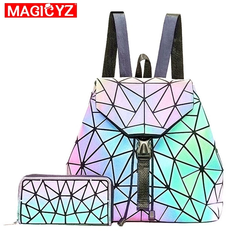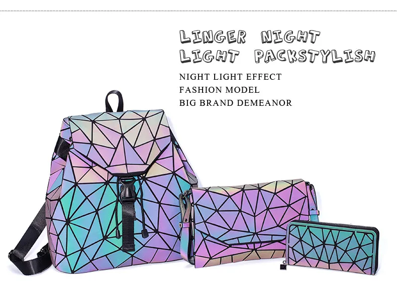 Светящийся рюкзак для женщин, набор из 2021 женских сумок с геометрическим лазерным узором, сумки-конверты через плечо голографический кошелек