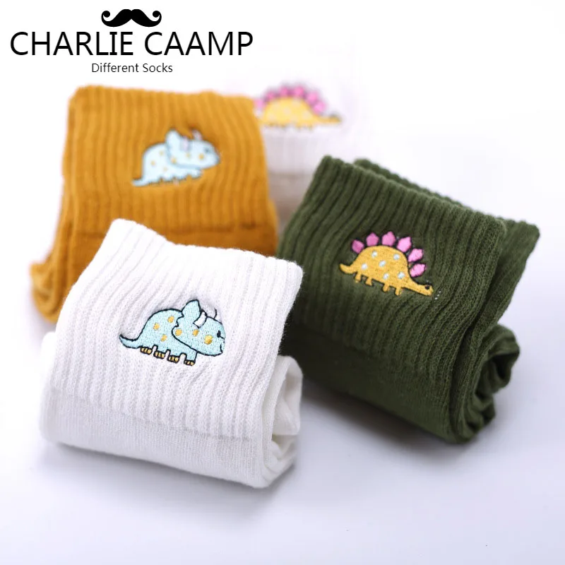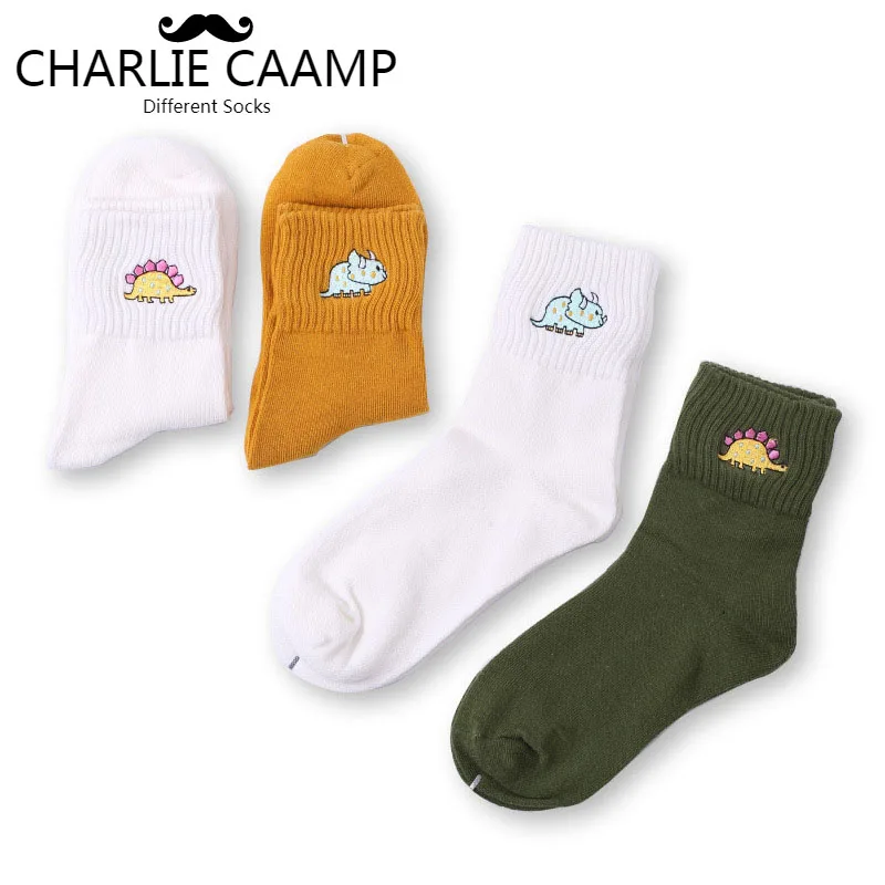 Женские носки, осенне-зимние новые хлопковые носки, Мультяшные животные, вышивка, динозавры, творческая личность, трендовые носки в стиле Харадзюку W105