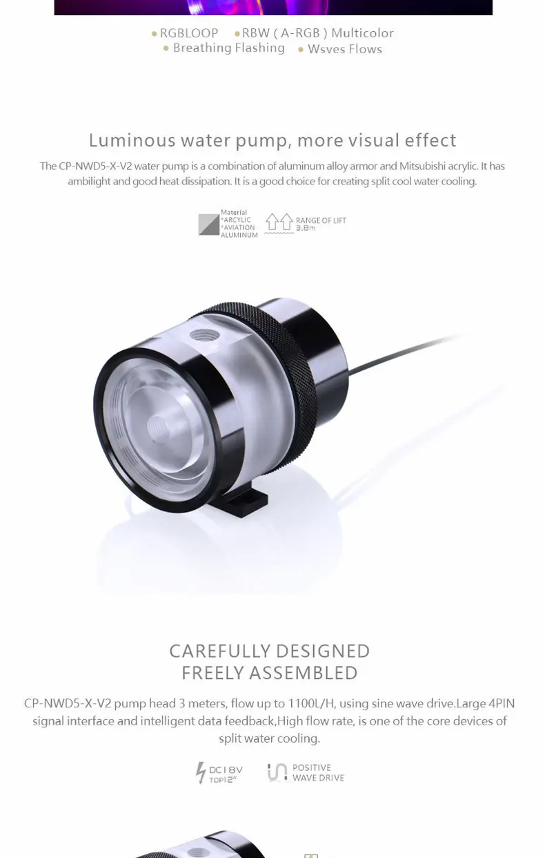 Водяное охлаждение Bykski RGB, выдвижной насос 1100L CP-NWD5-X-V2