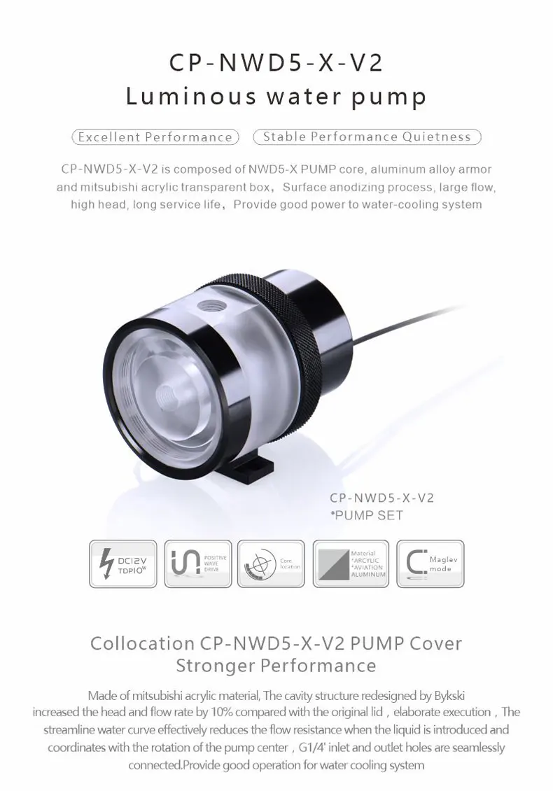Помпа Bykski CP-NWD5-X-V2 D5, максимальный расход 5 м 1000 лч, симф...
