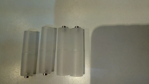 Продавец положил вместо одной "минусовой" половинки переходника "плюсовую". Не знаю, радоваться этому или огорчаться. С одной стороны, одна батарейка осталась без "минусовой" половинки. С другой стороны, эта половинка переходника не очень-то нужна. Размер батареек ААА увеличивается до размера АА за счёт "плюсовою" половинки. Таким образом, у меня оказался дополнительный пятый переходник, правда без "минусовой" половинки.