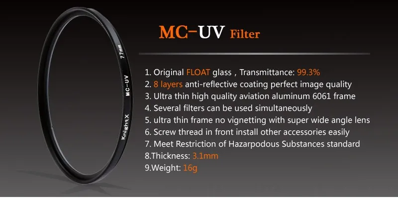 uv фильтр diam. 77. покрытие стойкое. сделан качественно. по функционалу нет информации