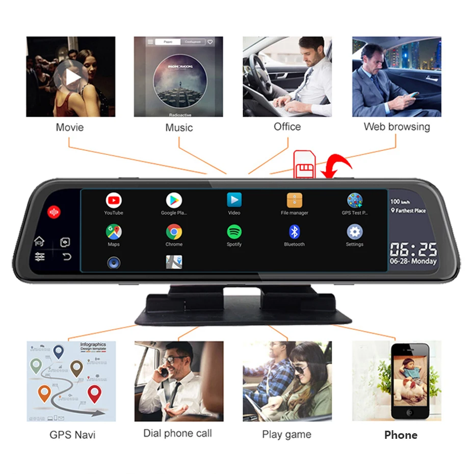 Видеорегистратор 4G на зеркало заднего вида, 10 дюймов, WIFI, GPS