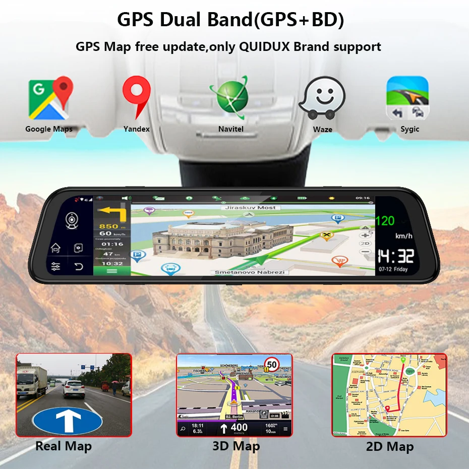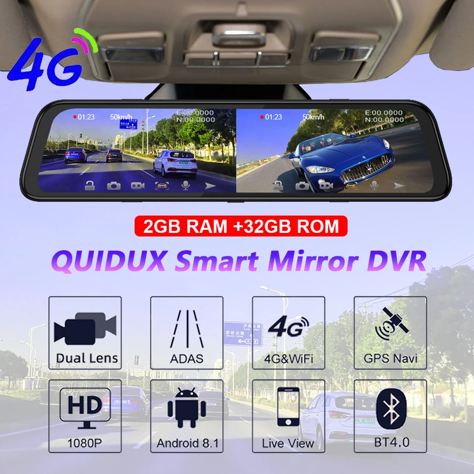 QUIDUX 4G Android 8,1 Dash Камера 12 дюймовое зеркало заднего вида с GPS навигации Full HD 1080P Видеорегистраторы для автомобилей видео регистратор рекордер WiFi 2 ГБ + 32 ГБ