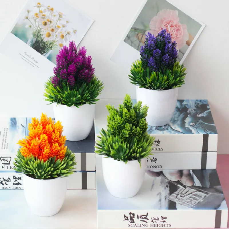 Набор искусственных цветов в горшках, настольные искусственные растения, бонсай, пластиковая ваза, семейный Рождественский Декор для дома, сада, Декор