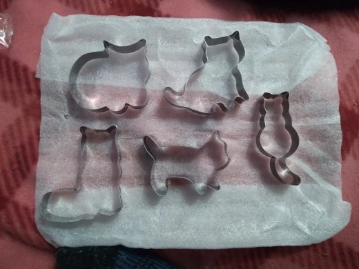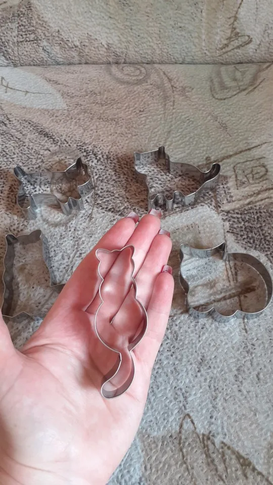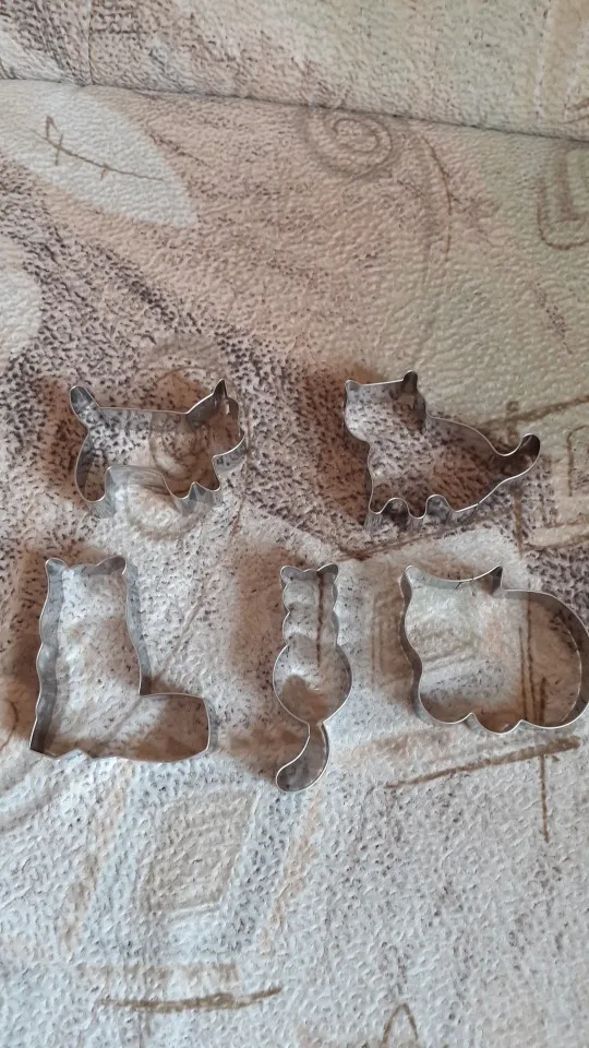 Это 5 кошачьих резаков, они очень милые и хорошо сделаны, они не согнуты, у них очень хороший держатель печенья, они не такие маленькие, как я думал, доставка была довольно быстрой, но из-за логистики моей страны мне потребовалось много времени, чтобы добраться до моего дома.