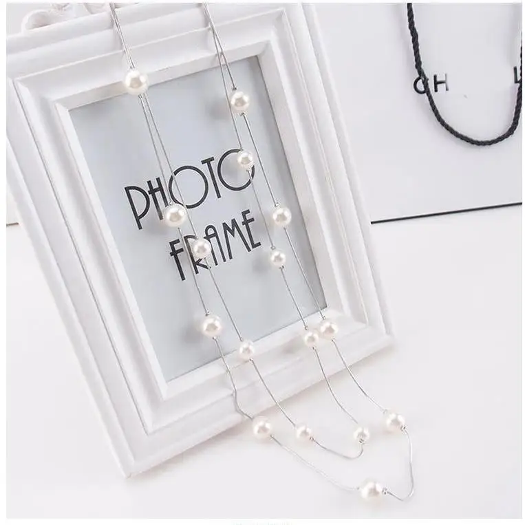 Корейская популярная модная двухслойная круглая жемчужная Длинная цепочка для женщин Винтажная темпераментная цепочка для свитера ювелирные изделия оптовая продажа