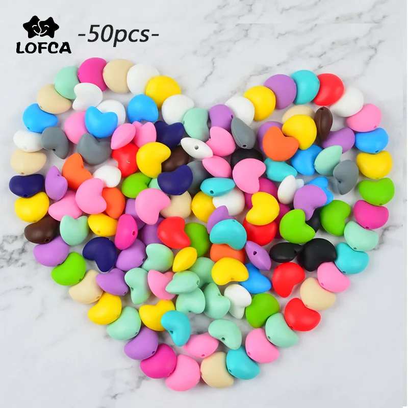 LOFCA силиконовые бусины в форме сердца 50 шт.лот детский прорезыватель из пищевого силикона свободные бусины сделай сам цепочка для пустышки зажим ожерелья игрушка