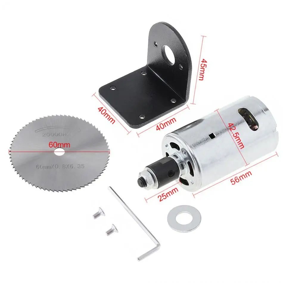 Особенности:-Эту небольшую настольную пилу можно использовать напрямую, но для самостоятельной сборки ее нужно собрать самостоятельно.-Двигатель содержит пять обмоток толстой медной проволоки с охлаждающим вентилятором.-Общая настройка скорости двигателя, даже не высокая скорость, но крутящий момент большой.-Обширный источник питания, все источники питания постоянного тока 12 ~ 24 В могут напрямую питаться и отлично работать.-Отлично подходит для использования, быстрее и удобнее.-Используется для различных применений отклонения мусора, включая дизайн печатных плат, травление, полировку, резку, деревообработку, модели с дистанционным управлением, робототехнику, дом и садоводство и так далее.