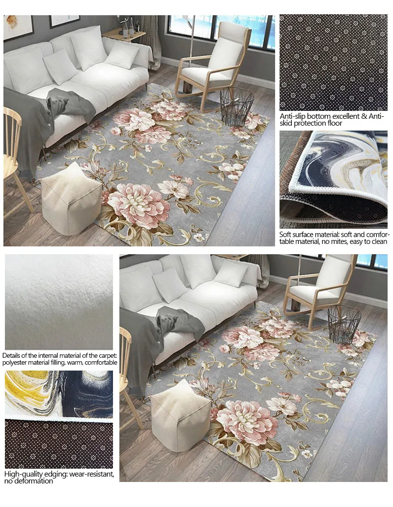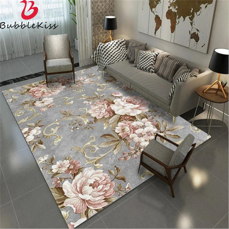Ковры Bubble Kiss для гостиной в европейском пасторальном стиле, Нескользящие напольные коврики с розовыми и серыми цветами, украшение для дома и спальни