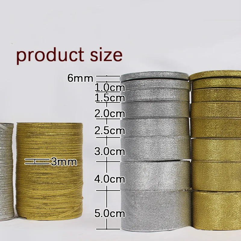 Лента с луком золотого и серебряного цветов, 0,3-5 см, подарочная упаковка, блестящая тесьма, подарочное украшение, рождественские ленты
