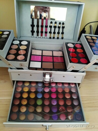 Профессиональный набор для макияжа мерцающие матовые блестящие тени для век помада, румяна хайлайтер карандаш для бровей с коробкой для макияжа Косметические Инструменты