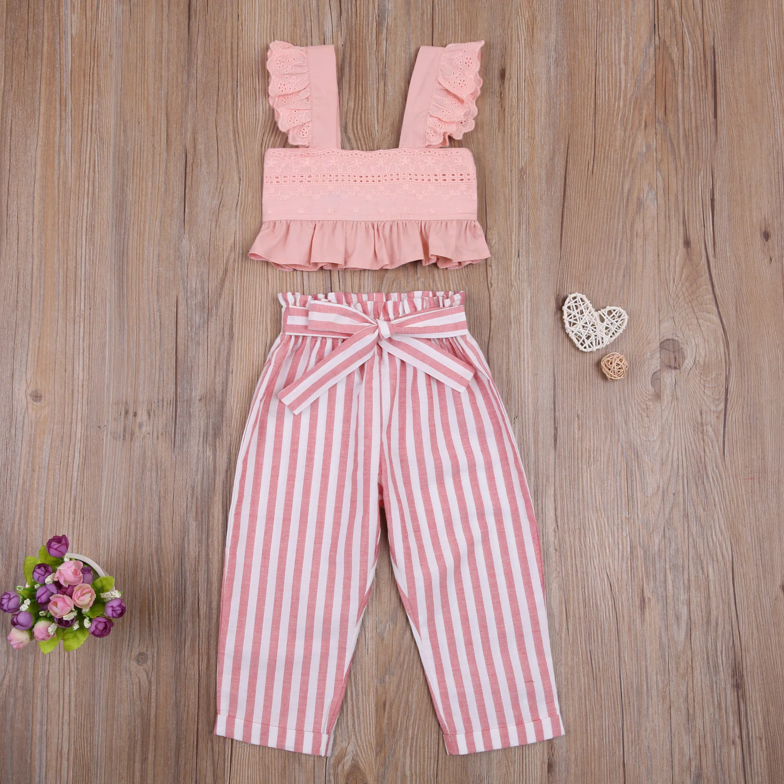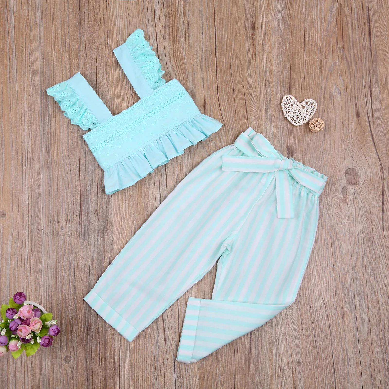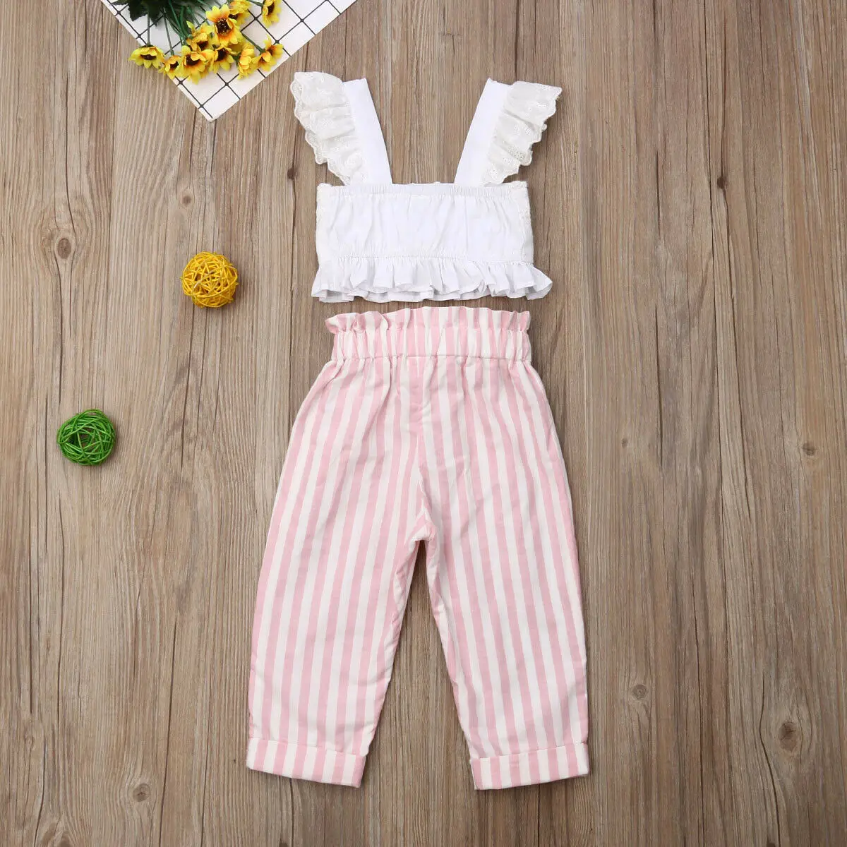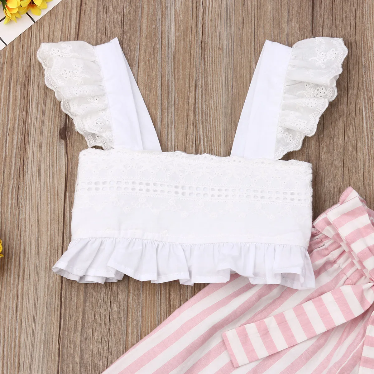 Комплект детской одежды FOCUSNORM для девочек 1-6 лет, 3 цвета, кружевные белые майки, полосатые длинные брюки, 2 шт., летняя одежда