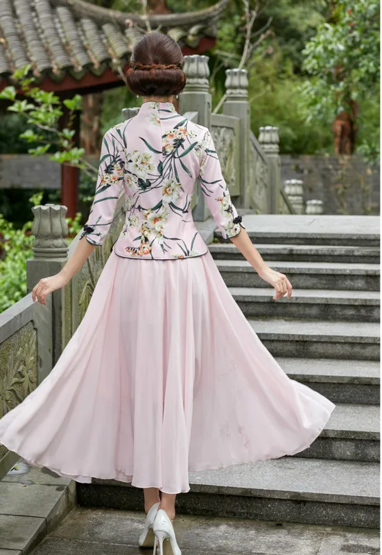 SHENG COCO розовые китайские платья Чонсам женские шелковые с длинн...